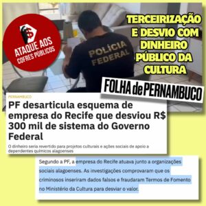 TERCEIRIZAÇÃO NA CULTURA: EMPRESA QUE ATUA JUNTO A OSs DESVIOU R$ 300 MIL DE SISTEMA DO GOVERNO FEDERAL