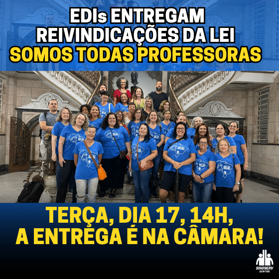 TERÇA, DIA 17, 14H, ENTREGA É NA CÂMARA! Conforme deliberação em assembleia, as educadoras de desenvolvimento infantil (EDIs) entregaram nesta segunda (9) ao Governo as reivindicações para cumprimento da Lei Federal nº 15.326/2026, a Lei Somos Todas Professoras. O representante da Secretaria de Finanças e Gestão, Éder Santana, se comprometeu a encaminhar a solicitação ao…